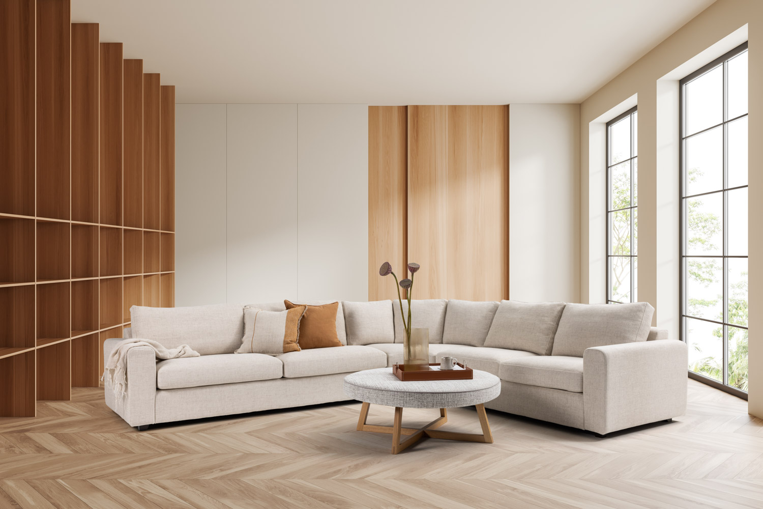 Criss Cross Ottoman a sturdy oak timber base, customisable in five different stain colours, ensuring a seamless fit with various decor styles. Upholstery options are fully customisable, allowing for a personal touch. Proudly Australian-made and it is available in custom sizes to suit specific needs. The ottoman comes with a solid 5-year warranty, highlighting its quality and durability.